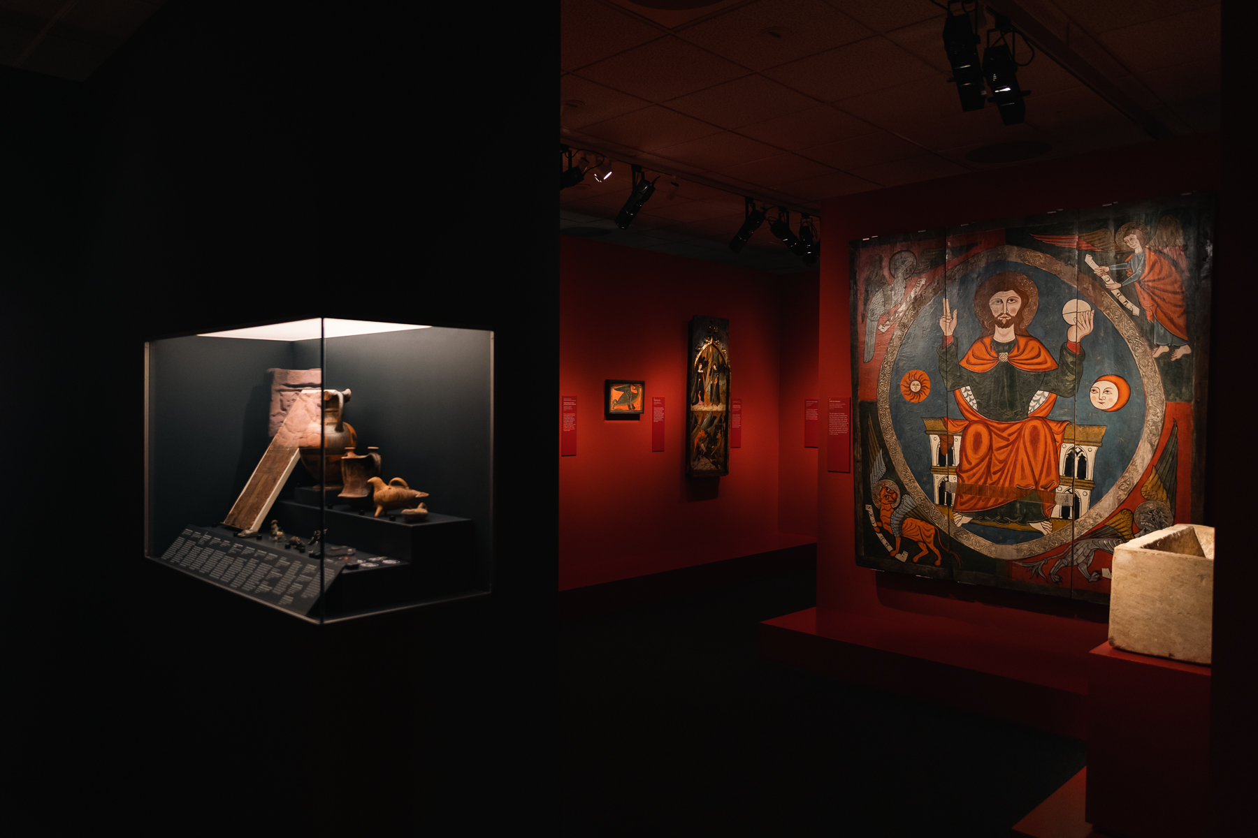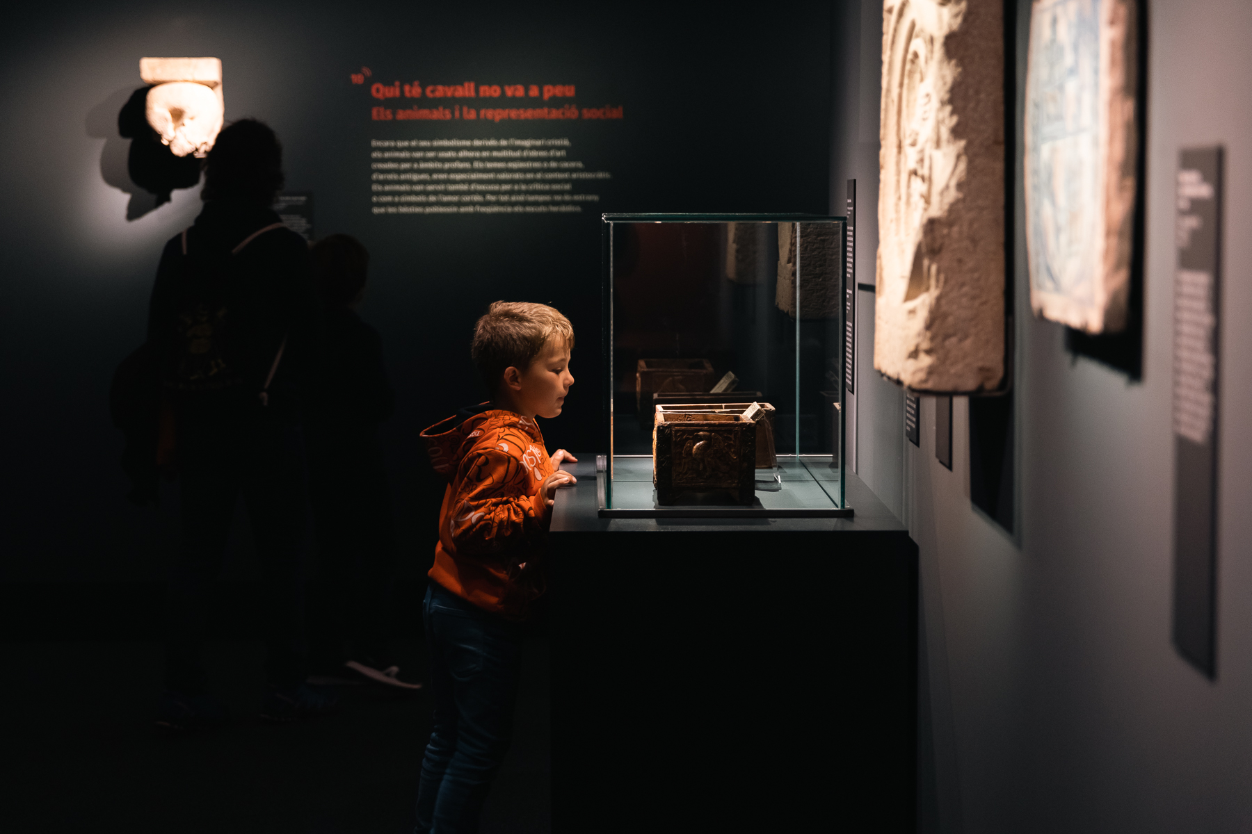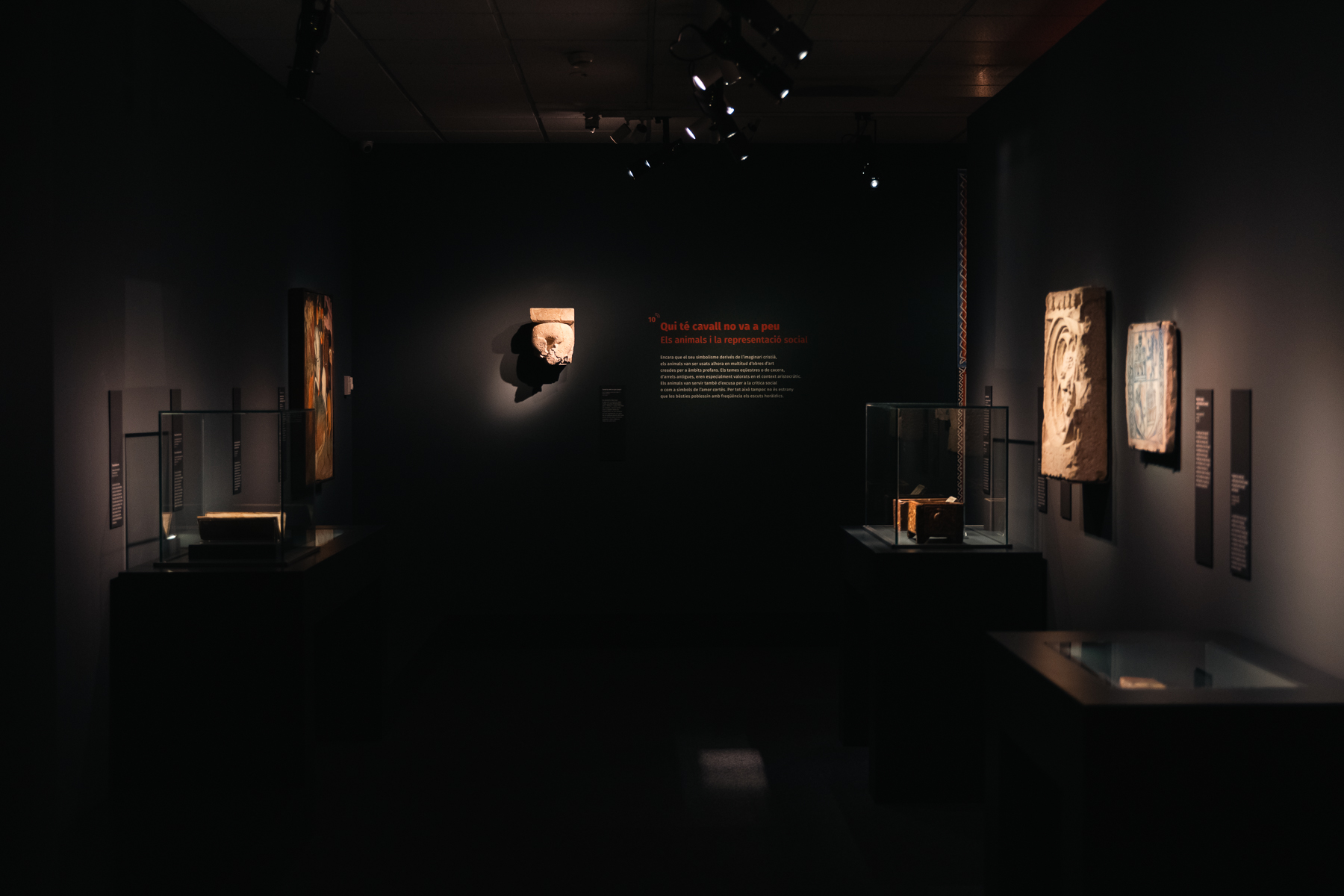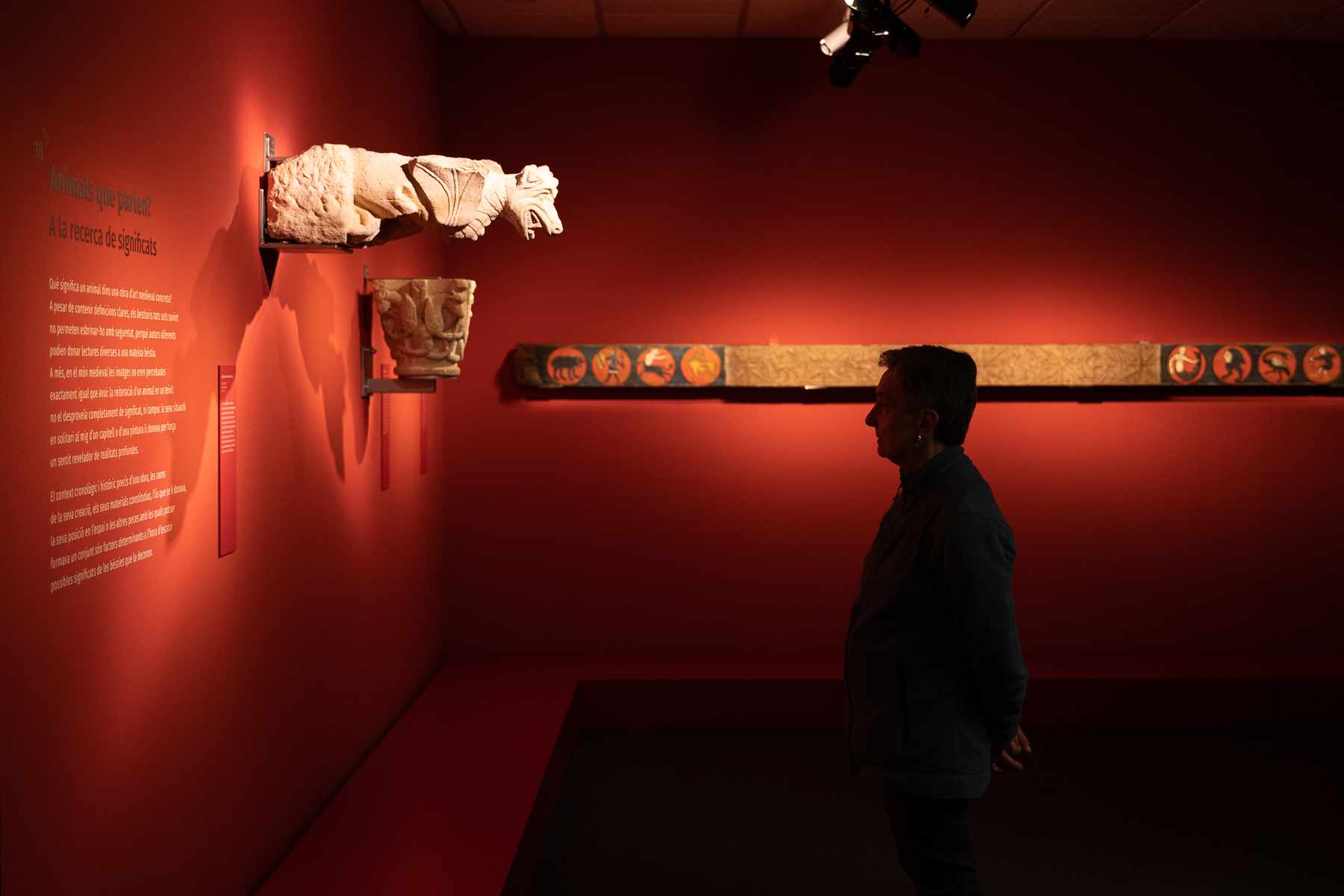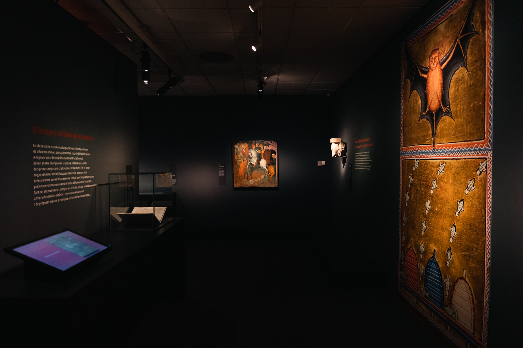 En l’art medieval els animals són omnipresents: per què? Aquesta exposició mira de donar claus interpretatives de la presència dels animals en les obres d’art de l’Edat Mitjana a un ampli espectre de públic. N’explica la presència en l’art anterior al món medieval; els significats bàsics en l’imaginari cristià, condensats en els bestiaris medievals; el paper que juguen en el món de la representació social, la raó de les seves variades formes ; la necessitat d’estudiar precisament cada obra en el seu context per mirar d’escatir significats més subtils i complexos; i finalment, la perduració en l’imaginari popular actual. L’exposició d’obres d’art del fons del MEV es complementa amb recursos com un bestiari virtual, un àudiovisual sobre els viatges medievals i els animals exòtics, fantàstics i monstruosos i una escenografia atractiva que implica emocionalment el visitant en la història narrada i potencia la fascinació pel món medieval.